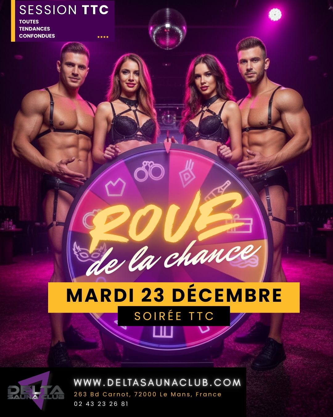 MARDI 23: ROUE DE LA CHANCE + Ajouter à mon Agenda Google + iCal / Outlook export 00 jours 00 heures 00 minutes 00 secondes Date Déc 23 - 24 2025 Heure 13h30 - 2h00 Lieu Delta Sauna Club 263 Bd Carnot, 72100 Le Mans Catégorie Evénements mixtes Organisateur Delta Saun Club Téléphone 02 43 23 26 81 Email contact@deltasaunaclub.com Partagez cet événement